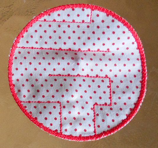 | In das Schiebepad wird eine kleine Kugel oder Perle eingeschoben, bevor der Rand drumrum gestickt wird. So ein Schiebespiel kann von einem demenzkranken Menschen genutzt werden - ich setze sie z.T. auf Nesteldecken. | ||