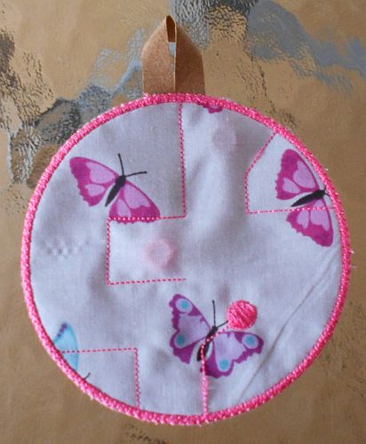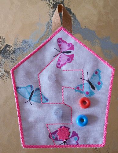 | In das Schiebepad wird eine kleine Kugel/Perle oder Ring eingeschoben, bevor der Rand drumrum gestickt wird. So ein Schiebespiel kann von einem demenzkranken Menschen genutzt werden - ich setze sie z.T. auf Nesteldecken. | Kontur (Outline) Hibiskus | |