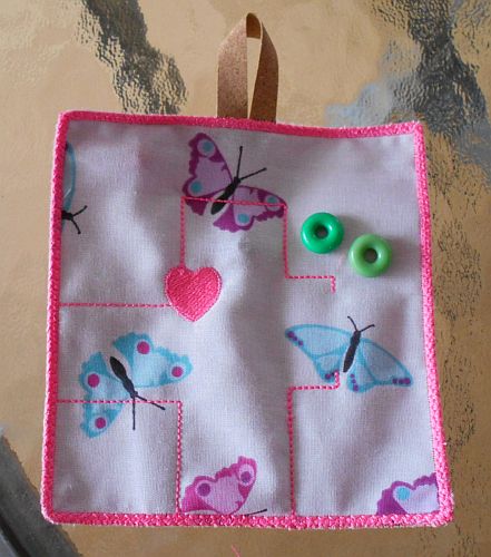 | "Schiebe-Pads für unruhige Hände, die etwas nesteln möchten. Hier können die kleinen Kunststoffringe oder Perlen/Kugeln durch die Kanäle geschoben werden. | ||