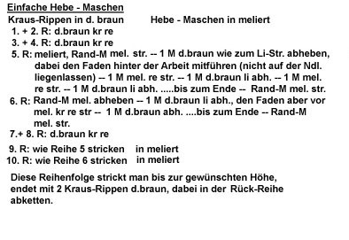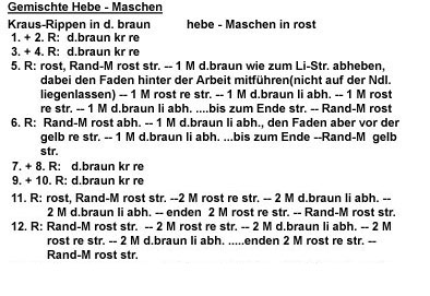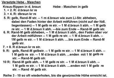Und diese Hebe - Maschen - Varianten stehen zur Verfügung.