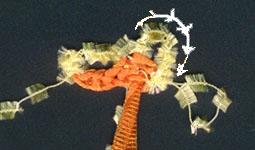 mit einer KettM in der unteren orangefarb. Muschel zum LuftM-Bogen schließen,-- nicht wenden | |