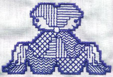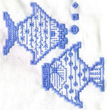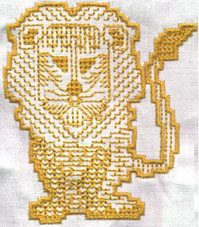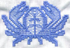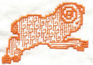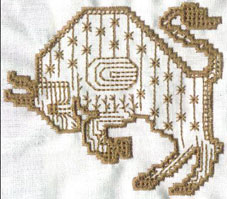 Motive, die großteils mit Metallic-Garnen gestickt werden, brauchen eine größere Sorgfalt beim Sticken. Zum einen sollte man auf alle Fälle eine Metallic-Nadel verwenden. Zum andern ist die Fadenspannung sehr wichtig, da auf dem laufenden Faden keine allzu feste Spannung liegen darf. Wer mehr dazu wissen möchte - auf der Seite TIPPS steht etwas mehr darüber. |