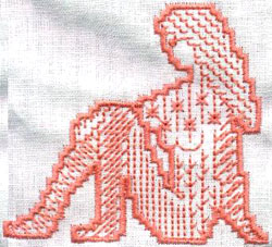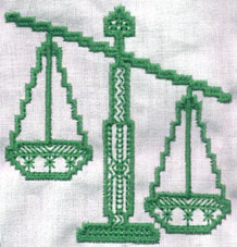 Diese Motive können NICHT auf wasserlöslicher Folie (Avalon, Solvy etc.) gestickt werden - aber sie werden wunderschön auf Organza oder Tüll. Oder nur auf einer "normalen" Decke oder einem Kuschelkissen. Auch kann man sich so seine eigenen Geburtstagskarten gestalten. Sie können auch ohne die plastische Umrandung gestickt werden - am Beispiel der Waage zu sehen - zum Beispiel auf eine Geburtstagskarte. Mehr dazu beim Karten (be)sticken. |