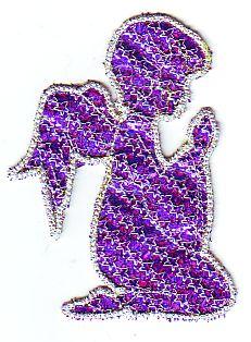 | Der Engel ist auf klarsichtiger "Regenbogenfolie" gestickt - die hat einen Farbverlauf von gelb über blau zu rot und zurück, im Farbübergang verlaufen die Farben. Hier ging es von rot zu blau über | ||