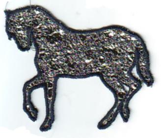 | Hier ist das Herz mit einem Punktierstich bestickt | Das Pferd hat ein "blumiges" Muster | |