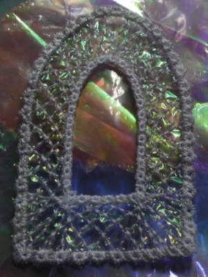 Freistehender Rahmen auf grau-grünem, mattem Mylar ... aber auch das funkelt