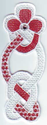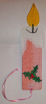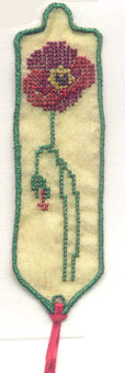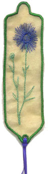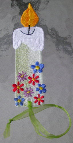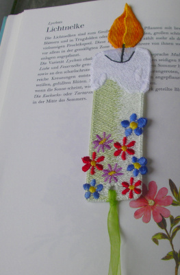ein Lesezeichen verschönern? Bedingt durch die Sticktechnik und das Muster ergeben sich ein paar mehr Spannfäden als "normal" - bei Maschinen, die selbständig abschneiden, spielt das aber keine große Rolle |