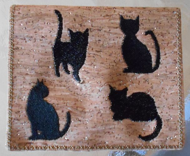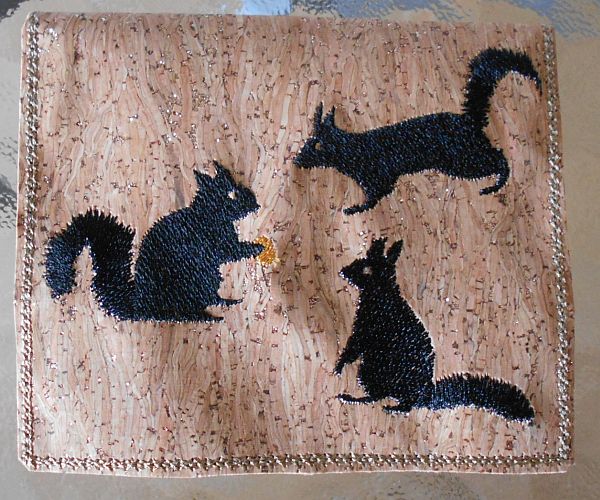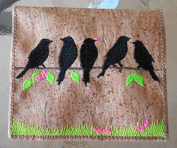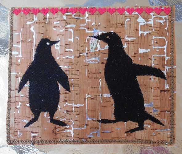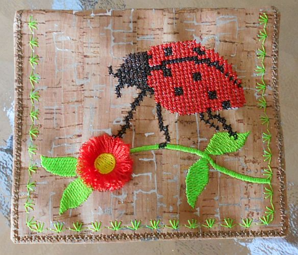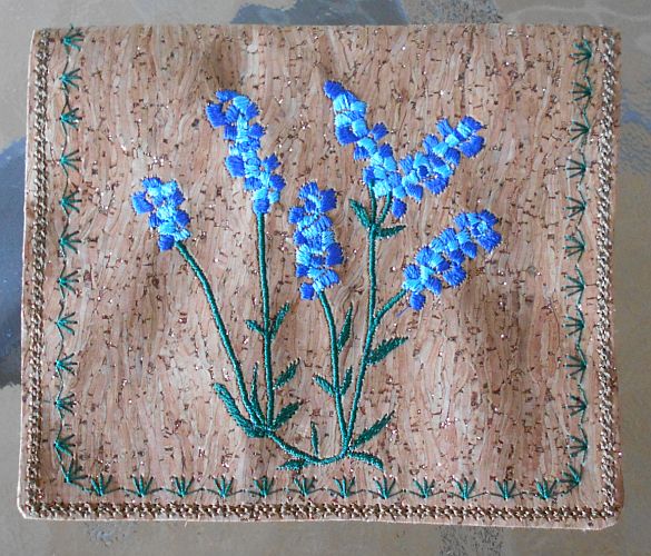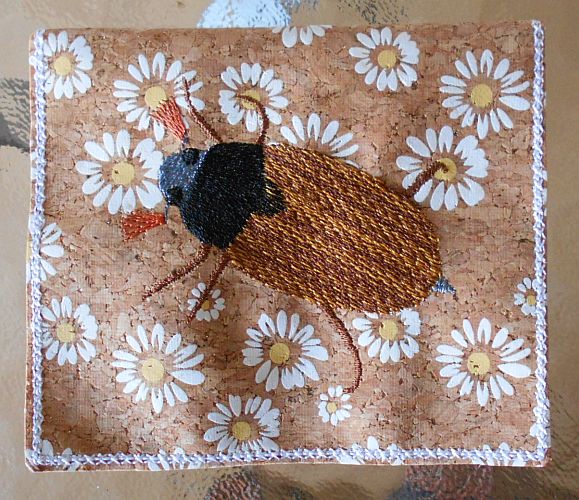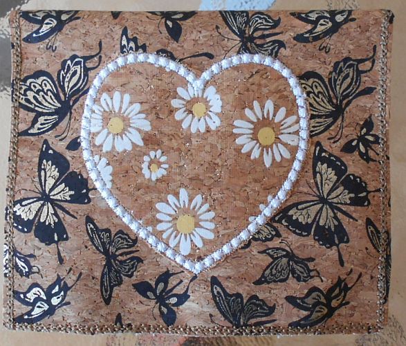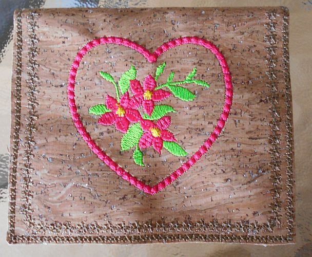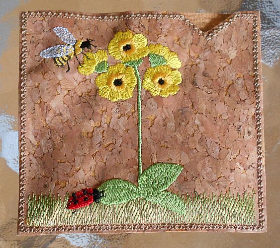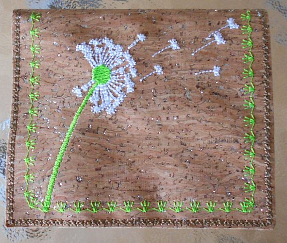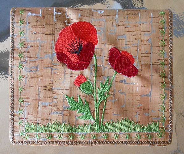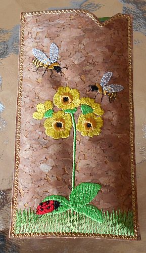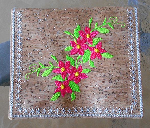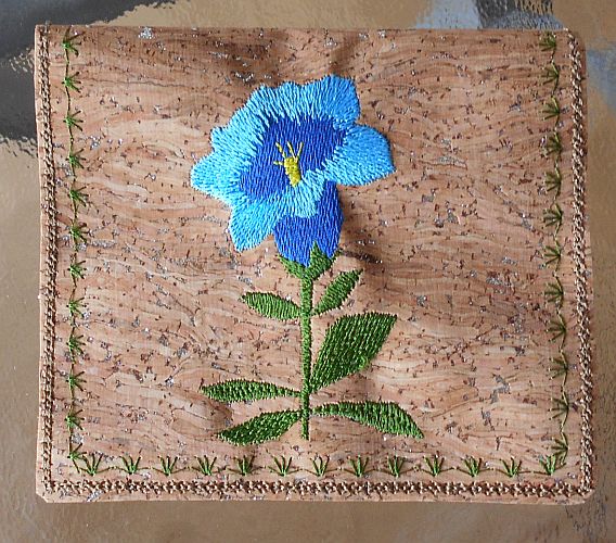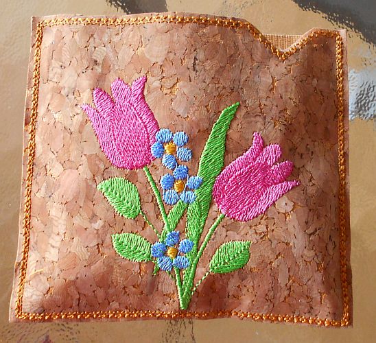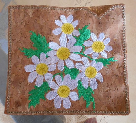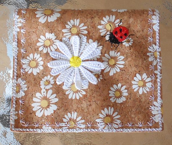 | je Hülle mit Stickmuster = 2,00 | Kork ist ein wunderbares Material, dass sich problemlos nähen und besticken lässt.Es gibt außer dem "originalen" Kork auch gemusterte und unifarbe Korkstoffe. | |
