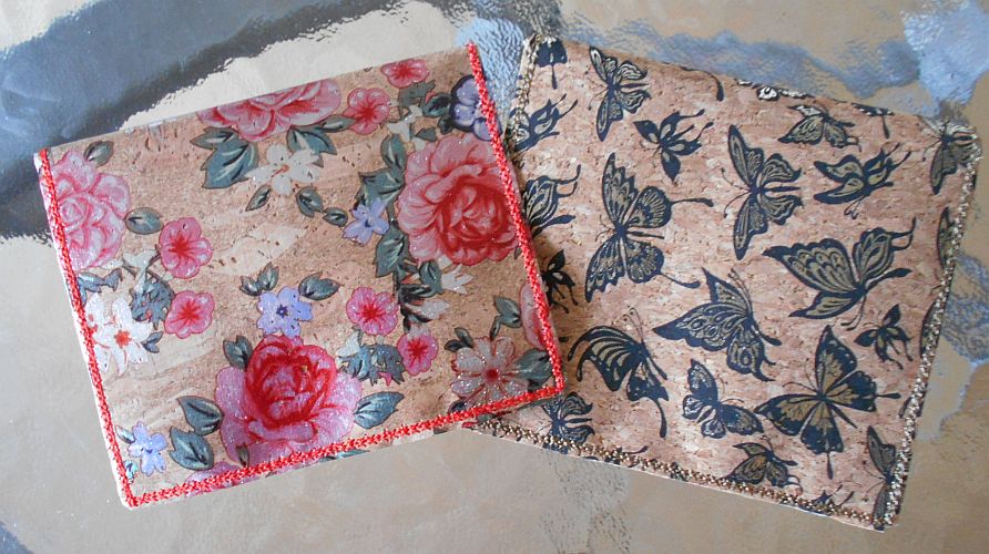 | Das gleiche Motiv in "hoch". | Es muss aber nicht immer Kork sein: dieses ist Microfaserstoff, sehr fest und nicht dehnbar, den man auch für Möbel verwenden kann. Er franst auch nicht aus. | |
