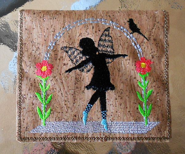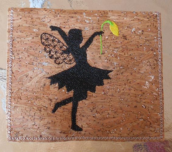 | Feen in Silhouetten-Technik - auf Kork | Schwarz hebt sich wunderbar vom Glitzer-Kork ab | |