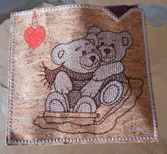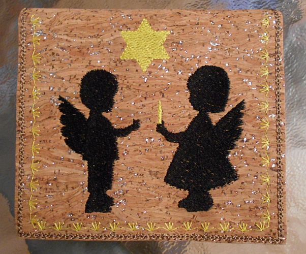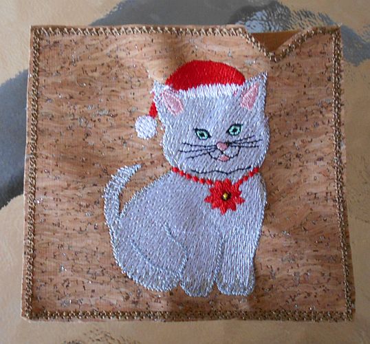 | Kork ist ein wunderbares Material, dass sich problemlos nähen und besticken lässt.Es gibt außer dem "originalen" Kork auch gemusterte und unifarbe Korkstoffe. | ||