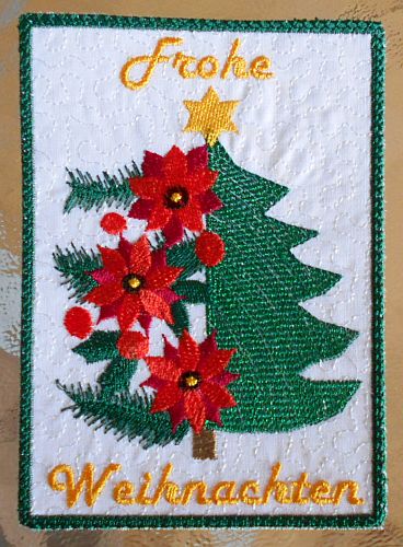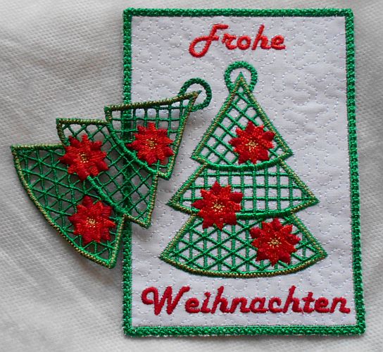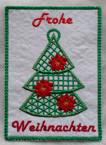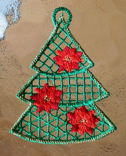 | Die Tanne wird als FSL - freestanding lace - gestickt | ||