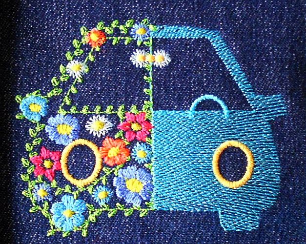 gestickt. Spiegelt man das Auto, hat man die "engl. Version" - Lenkrad auf der anderen Seite. |