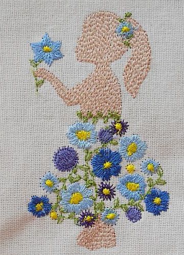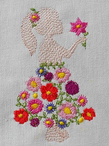 | Leider kommt es auf dem Bild nicht so plastisch rüber wie original auf dem Stoff | Hier ist die Hautfarbe etwas dunkler gewählt - sind die beiden Mädels nicht süß? | |