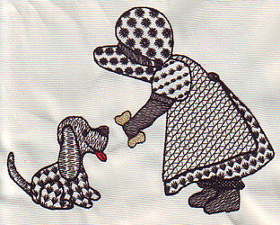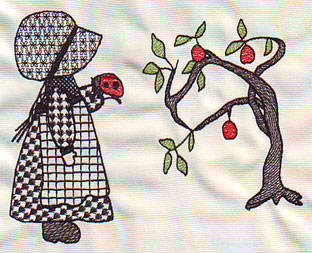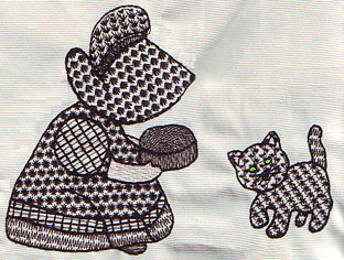 Die Sunbonnets auf einem Utensilo für das Kinderzimmer | |||