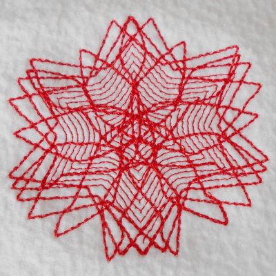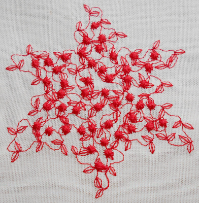 Metallicgarn gestickt. So ist auch die Stickdatei. |