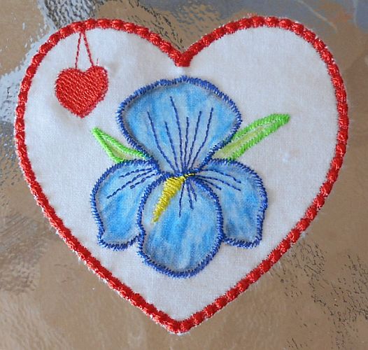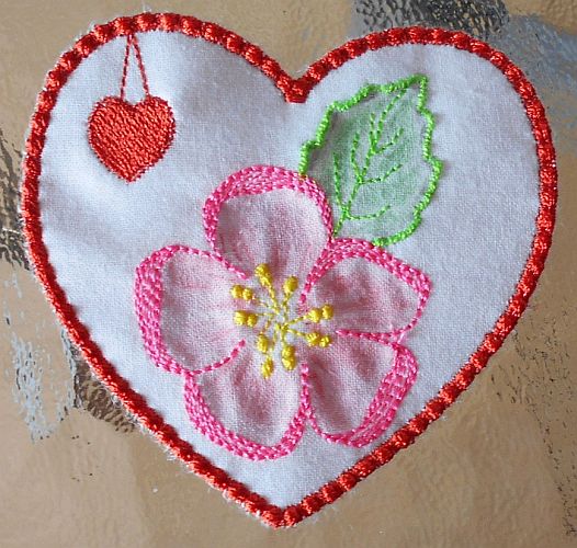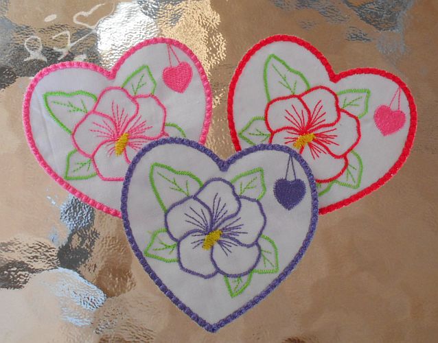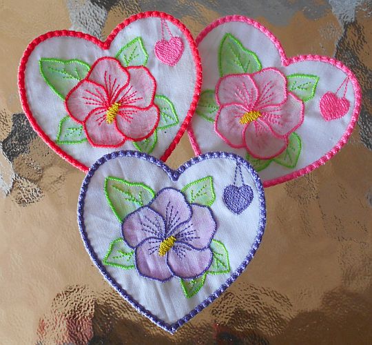 | Hibiskus-Blüten coloriert | nur Konturen gestickt, nicht coloriert | |