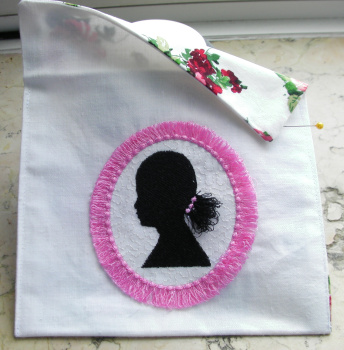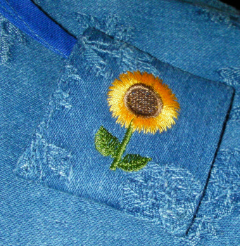 mit einer Negativ-Applikation und Fransenblümchen. Negativ-Applikation = die Applikation liegt unter dem Trägerstoff und nicht obenauf. | ||