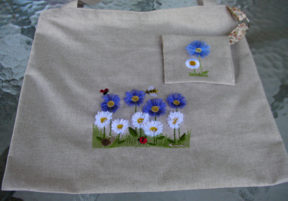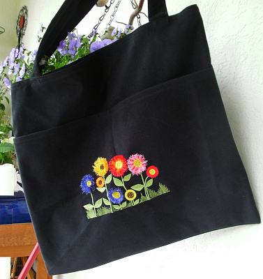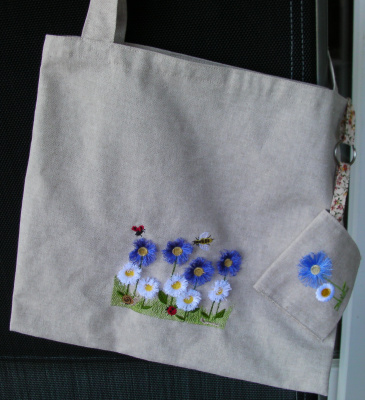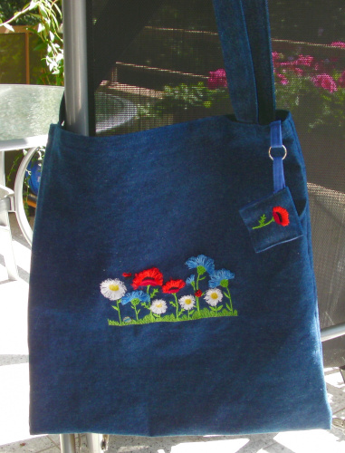 | "Blumenwiese" - nach dem 1. Sticken gab es natürlich noch einige Korrekturen, die man vor dem Sticken nicht so recht sieht. Es ist eine Kombination mit geschnittenen und ungeschnittenen Blumen. | Meine erste Tasche, die schon recht lange einem "Gebrauchstest" unterliegt. Den Fransen passiert wirklich nichts, die bleiben standhaft, werden nicht platt und "gehen auch nicht aus". | |||||||