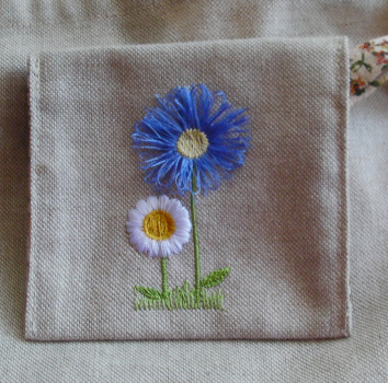 | Überarbeitete "Glockenblumen", die bei den ersten Versuchen nicht nach meiner Vorstellung waren. Aber dieses Mal hat es wunderbar geklappt, und aus der Probestickerei wurde ein Lavendel/Duftbeutelchen. |