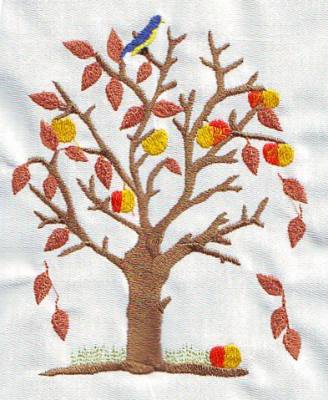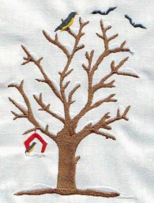 Herbst -die ersten Blätter fallen | Winter - Schnee auf den Ästen (leider ist auf dem Bild das Glitzergarn in weiß nicht so gut erkennbar) |