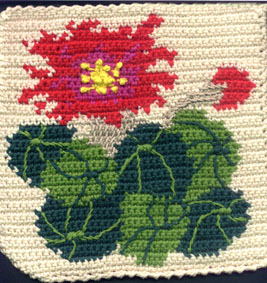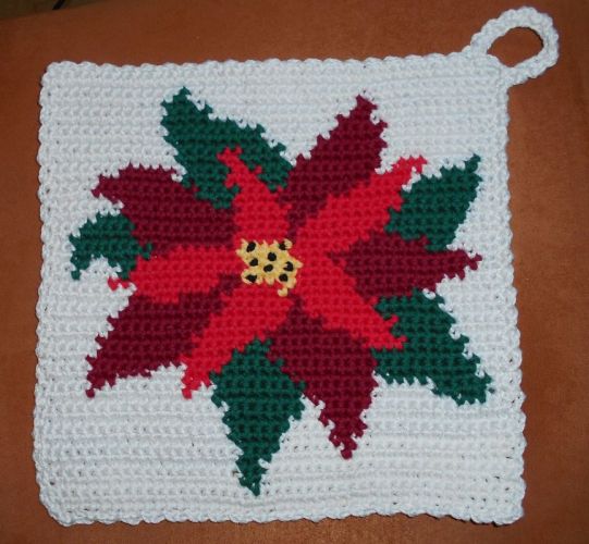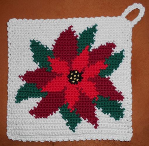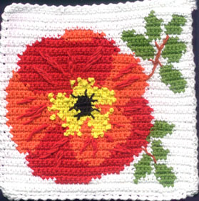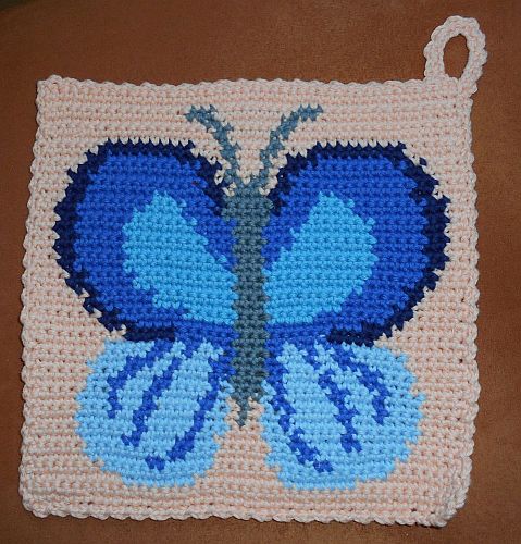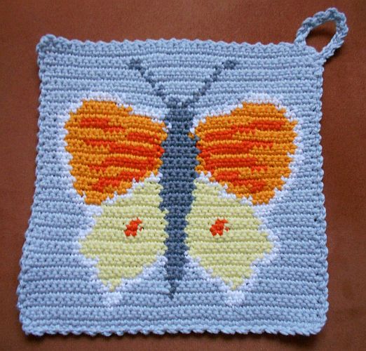 anderen Stellen meiner Seite erwähnt Um die Topflappen auch schön dick und groß gestalten zu können, ziehe ich den dünneren Baumwollgarnen das schöne, dicke Topflappengarn von ca. 85/87m auf 50 g vor. Es ist absolut kochfest - denn es soll auch Leute geben, die diese Topflappen benutzen und nicht nur als Zierde in der Küche hängen haben. |