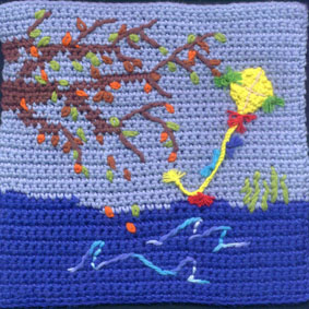 Mal etwas anders - c2c - Technik = corner to corner = von Seite zu Seite "schräg" gehäkelt. Die Muster habe ich selbst gemacht. |