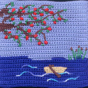 ... und auch als Kreuzstichmuster z.B. auf Geschirrtücher gestickt ( hier mit Maschine) - aber nach dem Topflappen-Schema gut mit der Hand zu sticken. | |