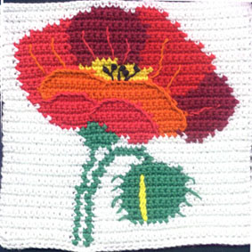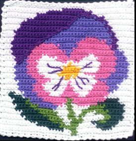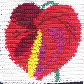 Nicht unbedingt für Häkel-Anfänger geeignet. Die einzelnen Farbflächen werden möglichst mit einem Extra-Faden gehäkelt. Mitlaufende Fäden scheinen durch hellere Farben oft hindurch und werden an den Stellen auch oft dicker und der Garnverbrauch steigt. Es werden feste Maschen gehäkelt. |