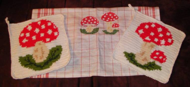 Es ist die Jahreszeit für Pilze - aber solche bitte nicht sammeln, die sind nur schön für Topflappen ... | |
