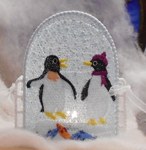 | Kleiner Pinguin im Winterschlaf ---- Größe 10 x 10 cm | Die Rückseite nit den Fischen, auch im Winterschlaf |
