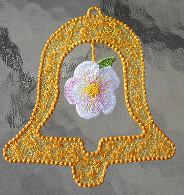 | Sechseck fürs Fenster mit Perlenrändern und Clematis | Raute mit einer Malve | |