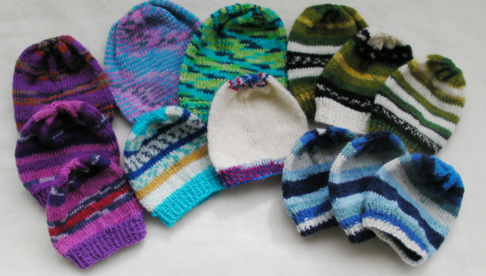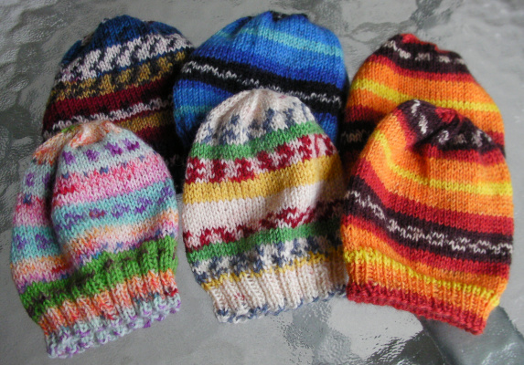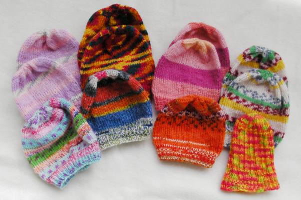 Frühchenmützen - so winzig, wie die wirklich sind, sehen sie hier gar nicht aus. | So sind dann die Wollen vollständig verbraucht | |