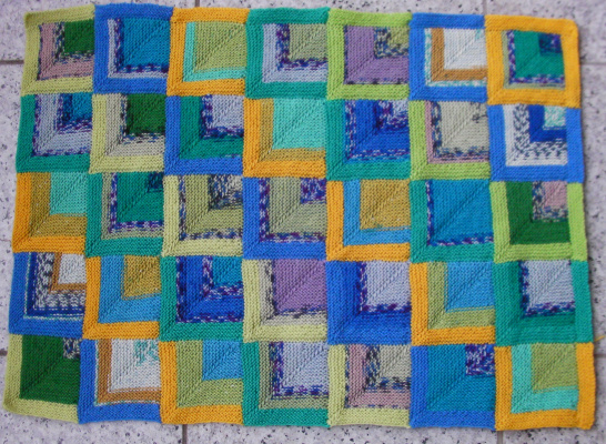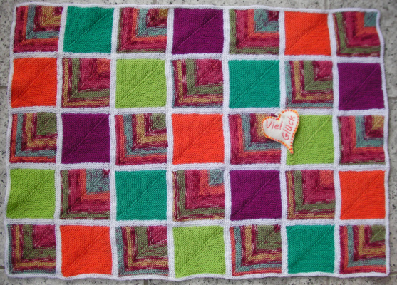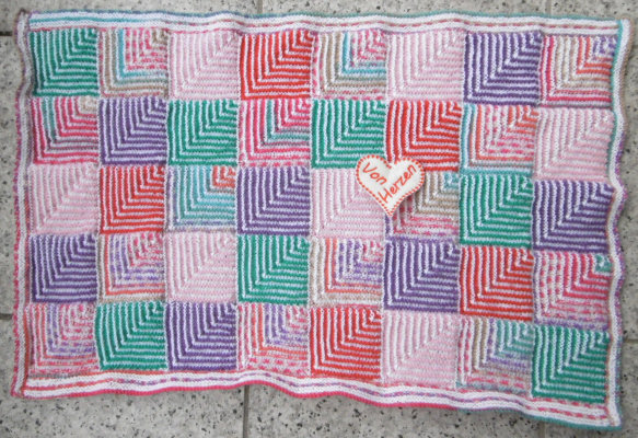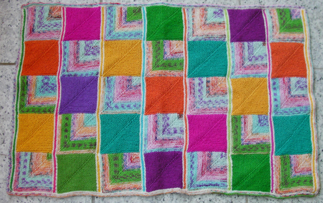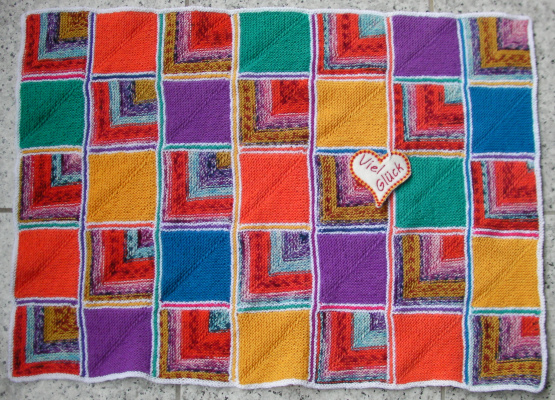 Nochmal ganz viele bunte Reste - verstrickt in ein kuscheliges Deckchen. | ||