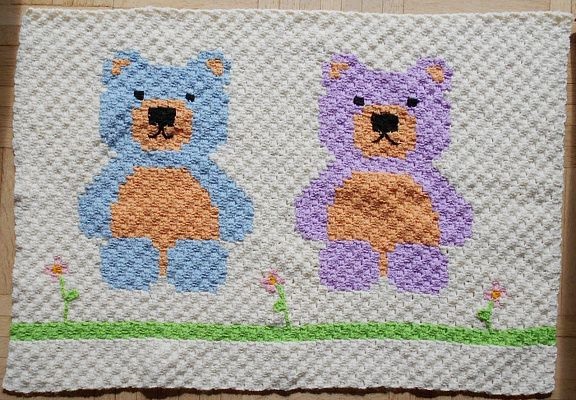 Nun zwei Bärchendecken als "Zwillingsdeckchen" - ich finde, die müssen nicht haargenau gleich sein ... | ||