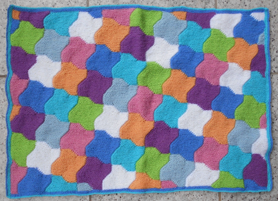 Puzzle-Teile | Hier sind "Windmühlen" zwischen die Puzzle-Stücke geraten - seeehr aufwändig zu stricken, aber fertig | |