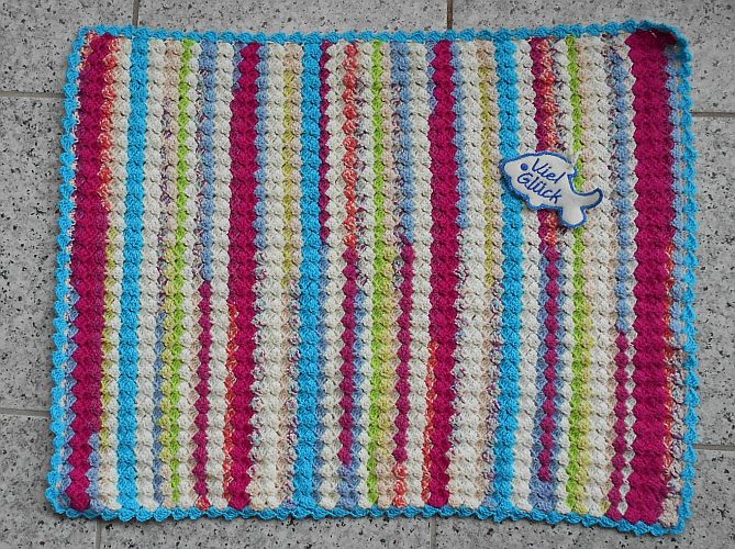 Und zum Abschluss wieder eine gehäkelte mit Schrägmuscheln - aber durch eine Reliefmasche ergibt das eine 3D-Optik |