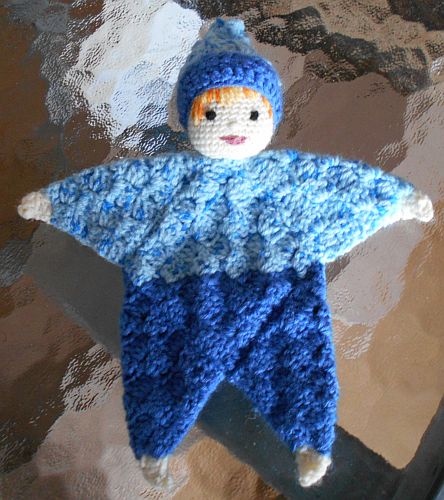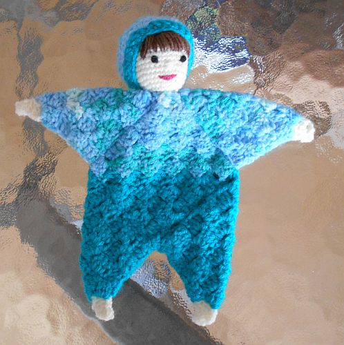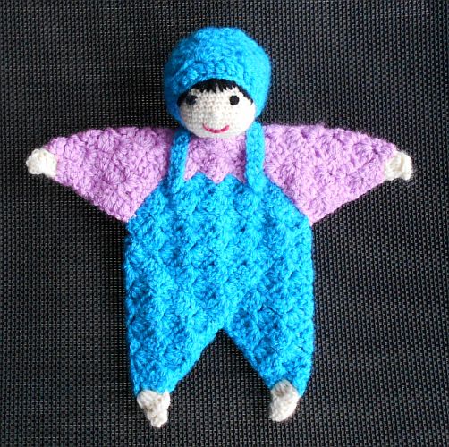 | Bunt ist alles verhäkelt - Blau ist alles verhäkelt, daher Schuhe ud Hände - es hätte nicht mehr gereicht | 2 Sonntagskinder - da es die etwas kleineren Muckele sind, sind sie auch recht schnell fertig (47 und 48) | |