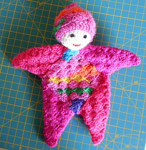 Das ist nochmal ein Muckele-"Baby" - mit 5 Kästchen c2c | Dieses auch - passt gut in kleine Kinderhände | |