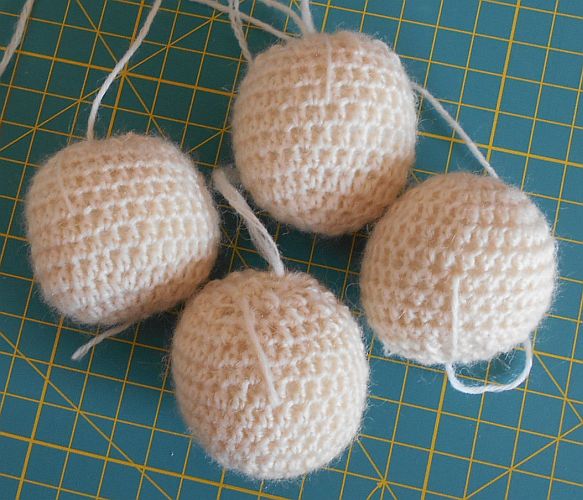 Da fiel mir das winzige, gehäkelte Köpfchen in die Finger, das eigentlich für ein Glückswürmchen bestimmt war - aber ich hatte keine Lust auf Glückswürmchen ... aber auf ein Mini-Muckele schon. Und da das auch "winzig" sein musste, habe ich es mit nur 4 Kästchen gehäkelt. | ||