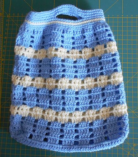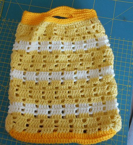 | Das Garn war ein "Fehl"kauf, da es für die "Muckele" nicht zu verwenden war. Was damit machen? Ideal für die kleinen Netz-Täschchen für die "jungen Damen", die immer was mitnehmen müssen. | ||
