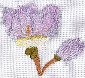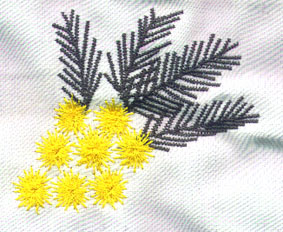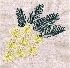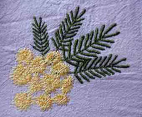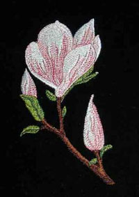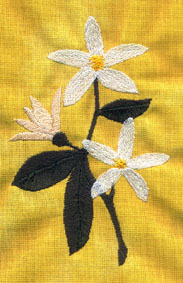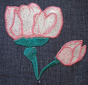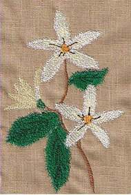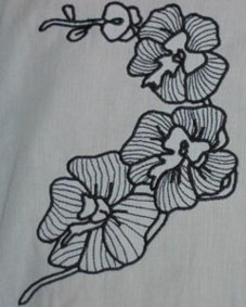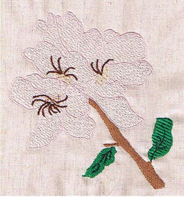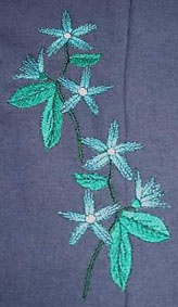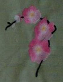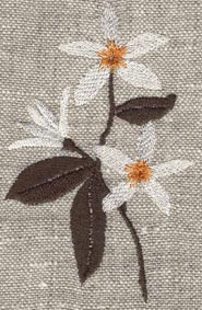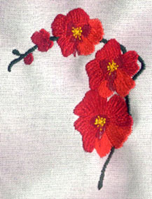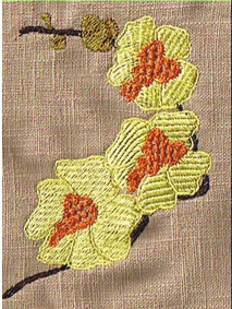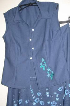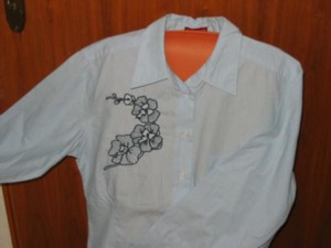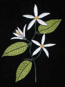 hier wurde die Orangenblüte passend zur Rockbordüre auf die Bluse gestickt | und hier ist es die Quittenblüte | |