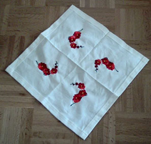 Zierquittenblüte auf einem Deckchen | oder als Mandelblüte auf Servietten |