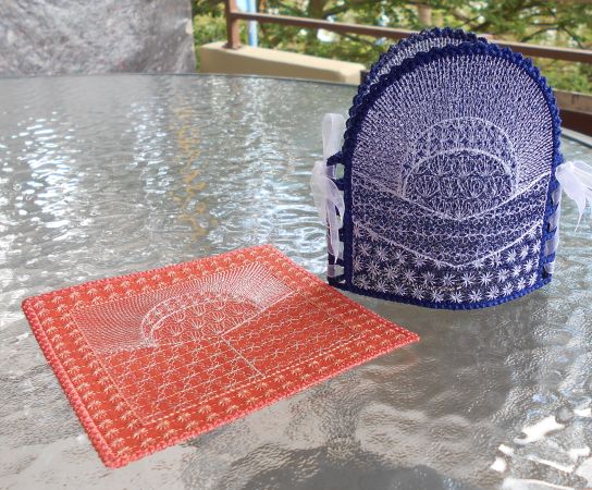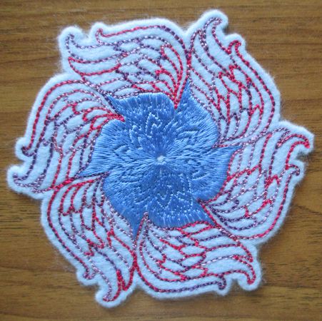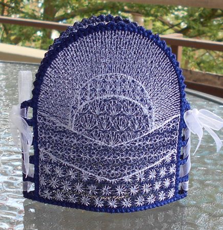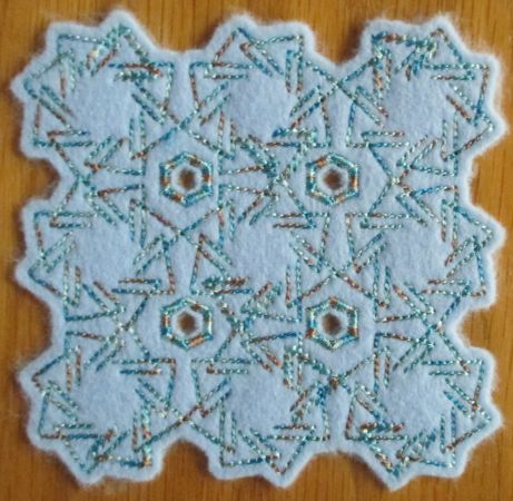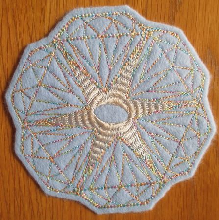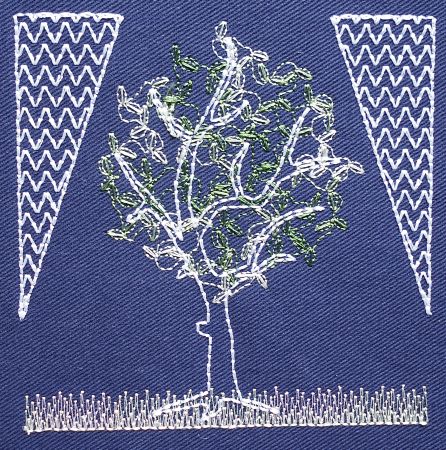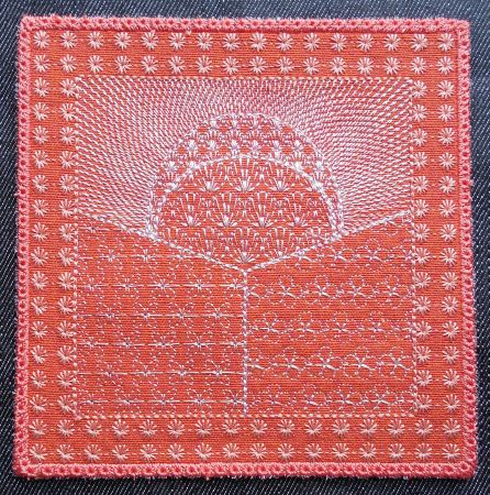 | Mit dem gleichen Ombré-Garn wie die Mandelblüte gestickt - rundum aber in Crème | ||