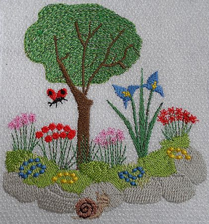 gestickt. Die klitzekleinen Blümchen und Blätter sind