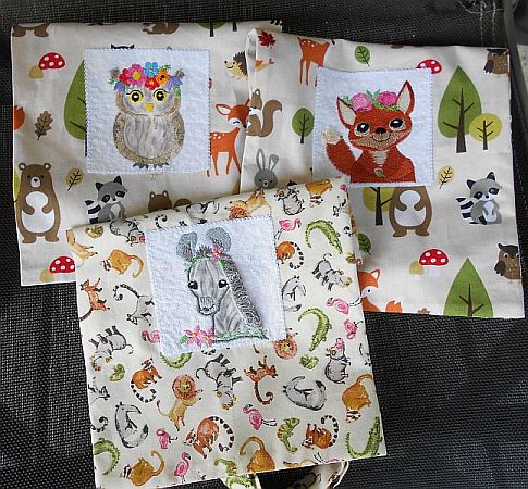 | Die Eule stammt vom Kinderstoff - unten als Täschchen zu sehen | ||