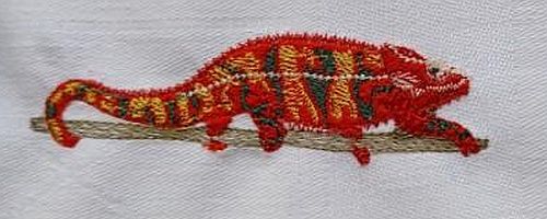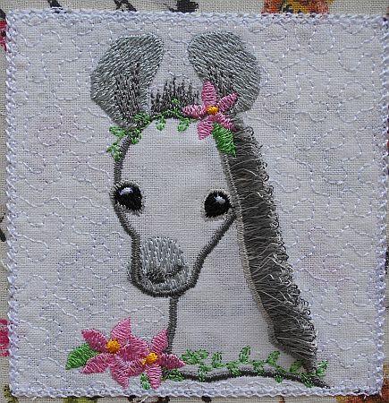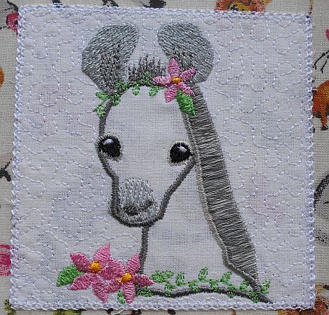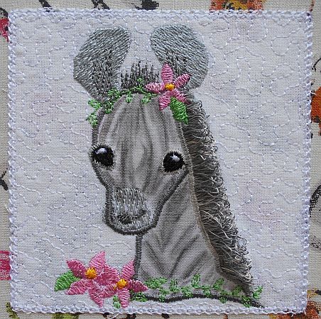 | So sah das Zebra anfangs aus - nur gestickt, dann die Fransen aufgeschnitten | ||