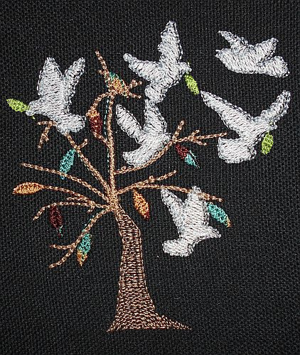 | Die Friedenstauben holen die letzten grünen Blätter vom Baum des Lebens | ||