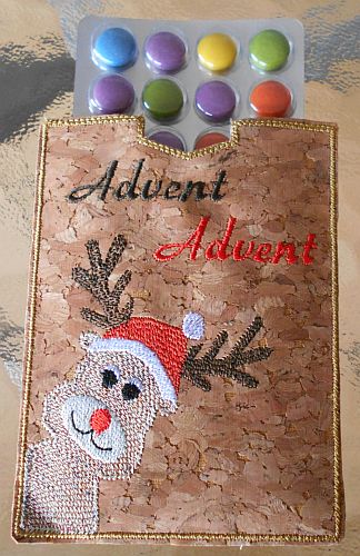 | Neugeborenen-Täschchen | Rudi verbirgt etwas - einen Adventskalender in Mini-Blister-Form ... jeden Tag ein buntes "Leckerli" | |