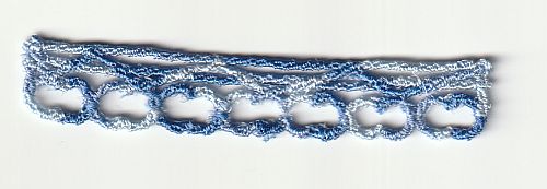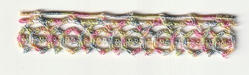 | Experiment1: Fransen mit Zickzack-Umrandungsstich. Leider war die Befestigungs-Stickerei nicht optimal. Breite des Zickzackstichs war 1cm, größtmögliche Breite. | Experiment2: Fransen mit handgelegtem Herz im Satinstich. Der Satinstich ist auch länger als 1cm, gewöhnlich hat er dann Zwischenstiche, die ich aber in meinem Programm umgehen kann. Mittelstiche perfekt, es lässt sich kein Fädchen herausziehen. | |